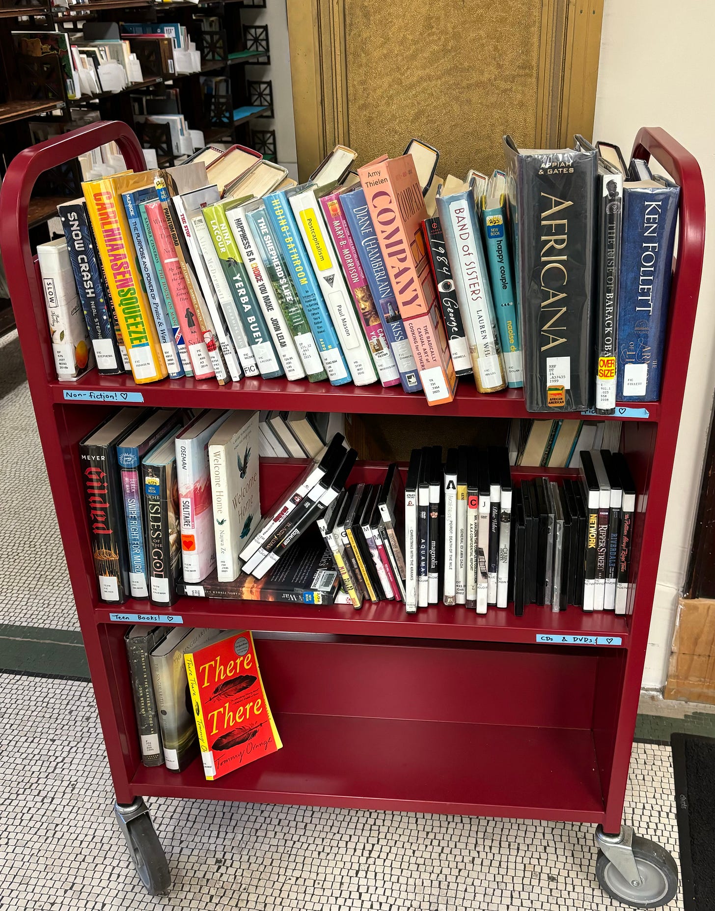 You know this shelf. It’s a glorious hodgepodge of reading material, none of which is there because it was recommended by an influencer, or satisfied the algorithm, or because a celebrity christened it “a favorite.” Gabbert describes this shelf as a “random cross section of all the circulating parts of the library: art books and manga and knitting manuals next to self-help and philosophy and thrillers, the very popular mixed up with the very obscure.” My local library doesn’t have a formal section of recently returned books, but next to the circulation desk, there are moveable carts holding books waiting to be reshelved. With a quick swipe of my thin plastic library card, I could help myself to books by Ken Follett, Tommy Orange, or Alice McDermott.